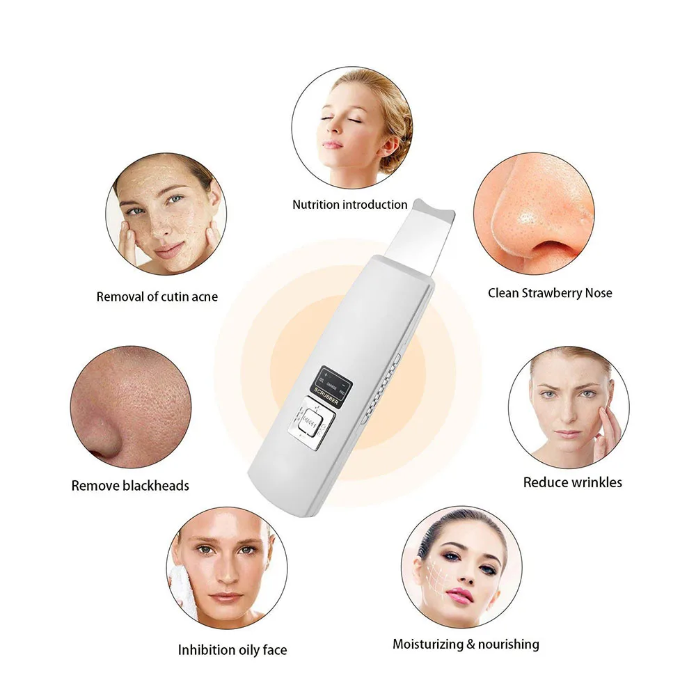Good Product Portable Ultrasonic Skin Scrubber Face Cleanser Ultrasound Pore Wrinkle Remover Cleaner Face Liftin